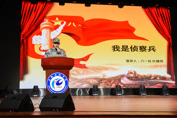退役大学生胡锦铭在宣讲“永挑重担,永担先锋”主题时向同学们展示了中国陆军“铁军”的风采以及他和班长们的军营故事;“我与火箭军的不解之缘”主题宣讲中,洪义飞向同学们介绍了我国战略威慑的核心力量、大国地位的战略支撑、中国人民解放军的王牌军种火箭军,引起了现场同学的浓厚兴趣;“黑班长”丁俊杰则带领同学们走进了中国人民武装警察部队,详细了解武警部队日常生活和训练;侦察兵退役的叶建伟讲述了他“传奇”的侦察兵之旅,侦察兵之苦,侦察兵之能让同学们肃然起敬;从一名普通学生转变成一名优秀教官的唐立鹏重点介绍了军人的执行力、做事的准则等;巾帼不让须眉的武警退役大学生高璇,阐述了一名话务员的职责,日复一日都在做着同样事情,不知疲倦的背、听、说等,只是为了能够准确的转述上级所下达的命令。
