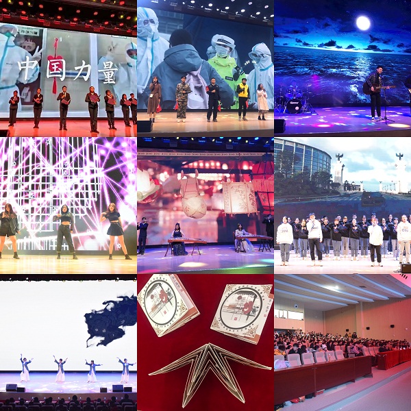 本次迎新生文艺晚会以“君度春秋七十载,挥墨峥嵘筑恢宏”为主题,共分为三个篇章。一支优美的古典舞《月无歇》拉开了晚会的序幕。第一个篇章“品古韵,沧笙踏歌”,器乐合奏《青花瓷》带我们走进诗意的江南小镇,《稻香》让我们沉醉,在《那片海》中我们仿佛看到了梦想的彼岸。第二个篇章“驻风华,鸠车竹马”,歌声与舞蹈交替带大家遍揽风华,踏遍万水千山。晚会最后一个篇章“解国危,大爱无垠”以激情的朗诵、深情的演唱展现了百姓们为疫情做出的努力。这场战“疫”的终点,终是温柔了岁月的碧海长空。