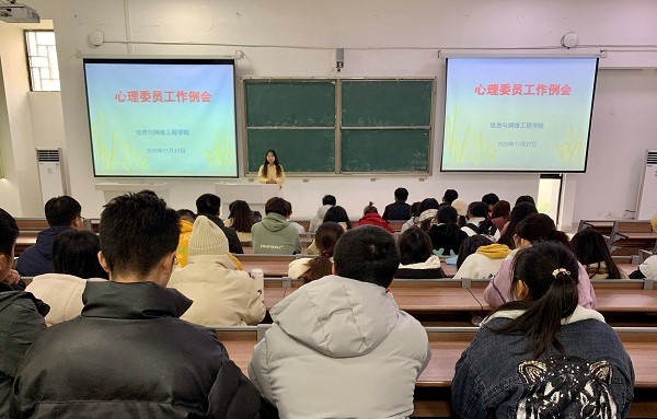 为让新生更好的了解到相关心理知识,认识到心理问题的重要性,信息与网络工程学院各班心理委员开展了新生适应周主题班会。会上,心理委员介绍了新生入学可能产生的心理困扰,如何认识心理健康,并与同学们进行了交流,解决了心理方面的疑问。通过观影、做游戏等方式,让同学们提升班级凝聚力。班会最后,大家纷纷表示自己有了很大的收获。