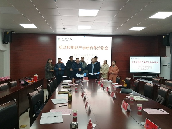 3月8日下午,安徽水利生态环境建设有限公司党支部书记余敦刚、副总经理李坤,蚌埠市市场监督管理局标准化科科长吴靖等一行7人应邀来校,参加政产学研合作洽谈会暨签约仪式。我校建筑学院院长张远兵、资源与环境学院院长李孝良以及课题组成员参加会议。会议由张远兵主持。