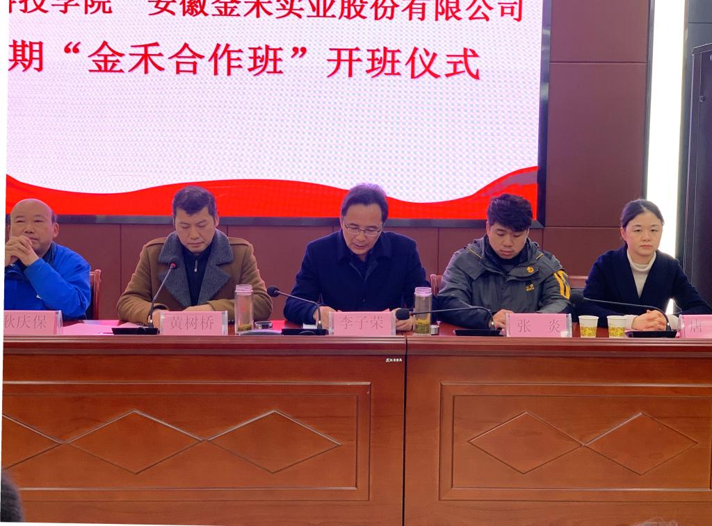 为深入推动校企合作协同育人,培养专业理论优、专业技能强、专业素质高的高水平应用型人才,3月13日下午,财神在线登录官网与安徽金禾实业股份有限公司首期“金禾合作班”开班典礼在综合信息中心西附楼111会议室举行。安徽金禾实业股份有限公司政策专利办副总工程师耿庆保、人力资源部经理燕岩等一行6人作为企业代表出席仪式,化学与材料工程学院党委书记黄树桥、党委委员副院长李子荣、党委副书记张炎、副院长唐婧,首期金禾班全体学员以及部分19级学生代表参加开班典礼,开班典礼由黄树桥主持。