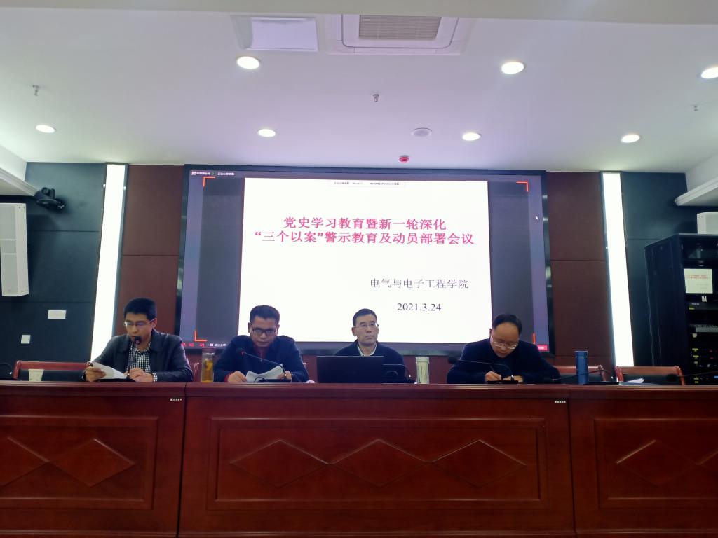 3月24日下午,电气与电子工程学院在综合信息中心西辅楼111报告厅召开党史学习教育暨新一轮深化“三个以案”警示教育及动员部署会议。党委书记骆海邦,党委副书记、副院长(主持工作)夏显明,党委副书记尚磊,副院长国海出席会议,学院全体教工党员及学生正式党员参与会议,会议由夏显明主持。