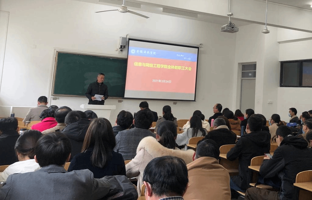 为进一步深入学习贯彻习近平总书记在党史学习教育动员大会上的重要讲话精神和全国教育大会精神,广泛展示新时代教师教书育人事迹风采,引导广大教师守教育报国初心、担筑梦育人使命,争做“四有”好老师。3月24日下午,信息与网络工程学院在致知楼C105开展2020年“新时代教书育人模范”评选表彰活动。学院党委书记王振其、正处级组织员周向群,党委副书记韦乃学、副院长何恩节、副院长曹浩及全体教职工参加会议,会议由王振其主持。