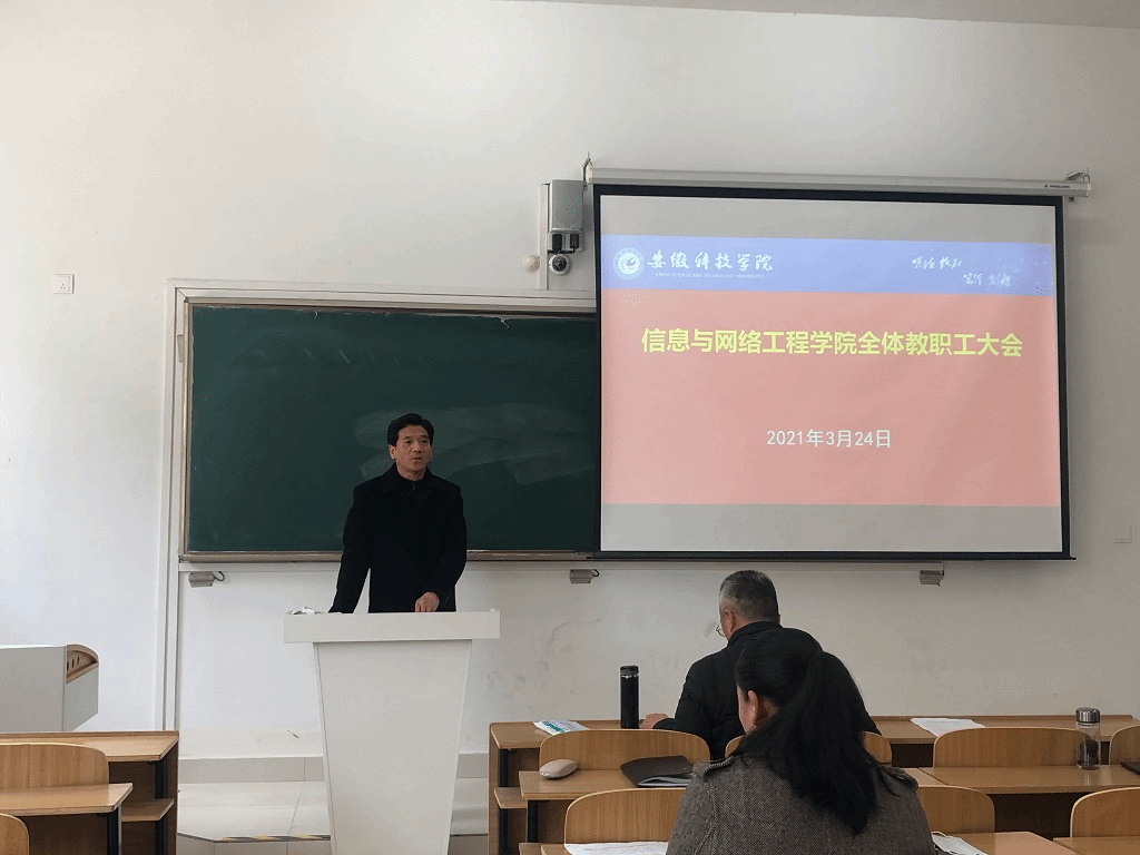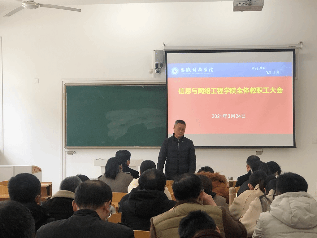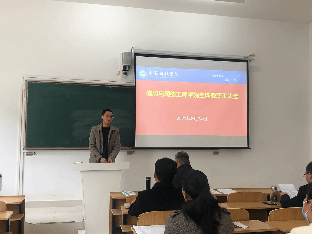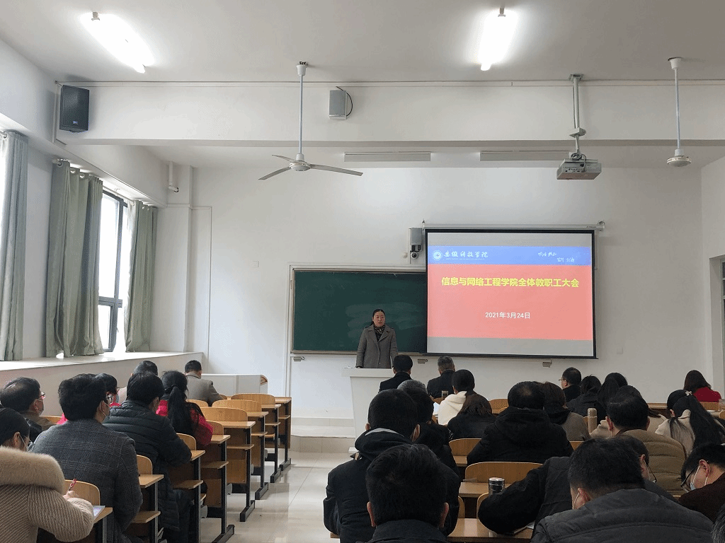 3月24日下午,信息与网络工程学院在致知楼C105召开全体教职工大会,回顾和总结学院2020年各项工作,部署学院新学期各项工作。信息与网络工程学院党委书记王振其、正处级组织员周向群,党委副书记韦乃学,副院长何恩节,副院长曹浩及全体教职工参加会议,会议由王振其主持。