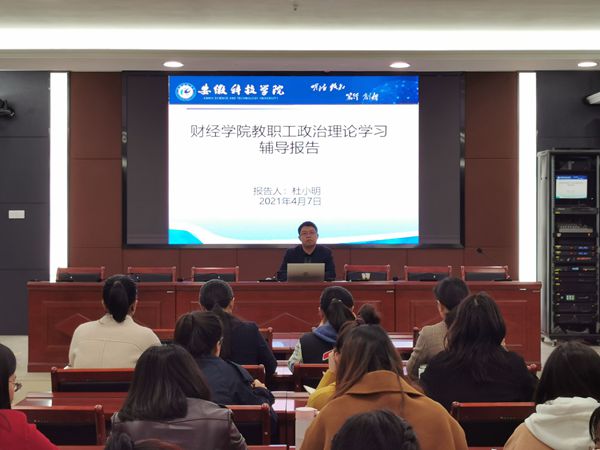 4月7日下午,财经学院在西辅楼111会议室组织教职工政治理论学习。全体教职工参加学习,学院党委书记杜小明作理论学习辅导。