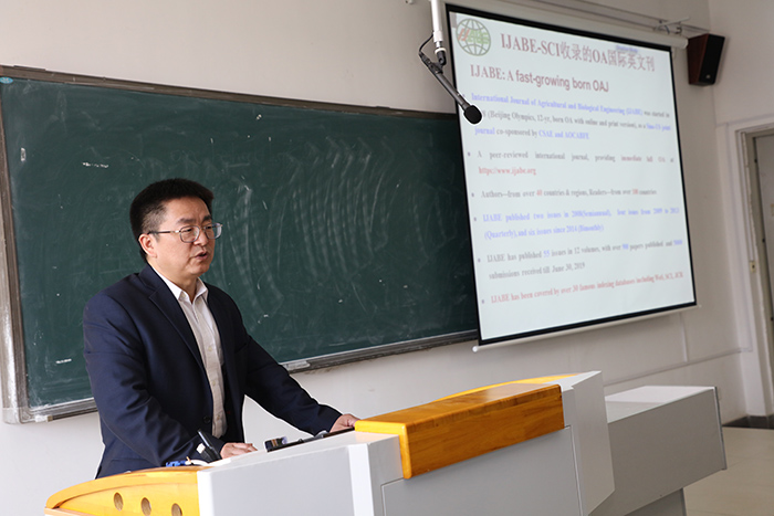4月9日下午,《财神在线登录官网学报》期刊发展研讨会系列学术报告第六场专题学术报告于凤阳校区新知楼A401举行。《农业工程学报》主编、农业农村部规划设计研究院农业工程科技信息中心主任、《国际农业与生物工程学报(IJABE)》主编、国家精准农业航空中心学术委员王应宽作了题为“如何撰写与发表高质量SCI论文”的学术报告和办刊交流,学院相关专业师生参加了本次学术交流活动。