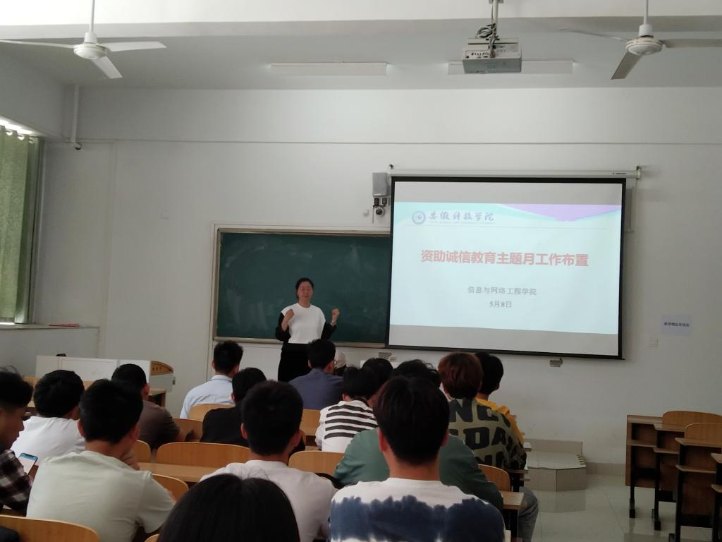 为培育和践行社会主义核心价值观,进一步增强大学生的诚信意识,强化资助育人效果,提升当代大学生的综合素养,5月8日中午,信息与网络工程学院在致知楼C107召开以“诚信、感恩、责任”为主题的学生资助诚信教育主题月活动布置会,会议由学院专职辅导员丁阿敏主持。