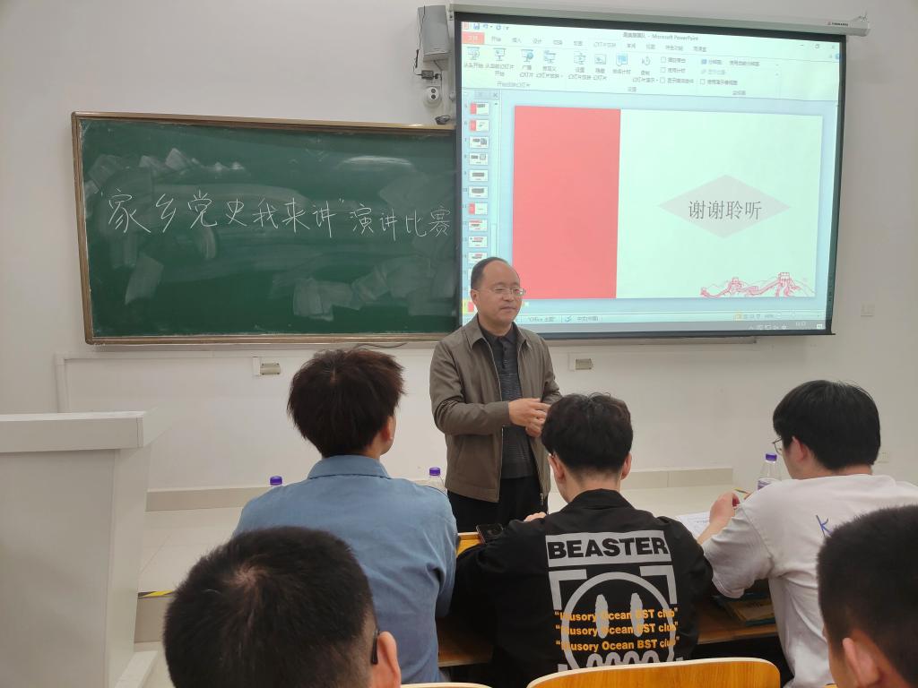 为庆祝中国共产党成立一百周年,引领广大青年深刻领悟中国共产党的责任与担当,进一步增强爱党爱国爱社会主义之情,5月16日上午,电气与电子工程学院于致知楼B107举办“家乡党史我来讲”演讲比赛。电气与电子工程学院党委副书记尚磊出席了本次活动,学院各团支部团员代表参赛。比赛由学院学生会实践拓展部负责人孟翔主持。