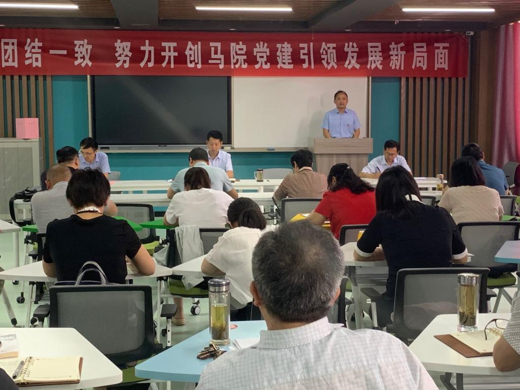 学院党总支书记杨仕勇代表上届党总支作了题为《团结一致努力开创马院党建引领发展新局面》的工作报告。报告总结了过去五年学院政治建设、思想建设、组织建设和党风廉政建设等方面取得的成绩,指出了学院发展中存在的不足,并对今后五年的工作目标、工作思路、工作任务与措施进行了谋划,引起与会党员强烈共鸣。杨仕勇强调,要认真落实学校第三次党代会精神,围绕学院十四五发展目标,抢抓当前思政发展机遇,落实立德树人根本任务,围绕重点马院、重点课程和重点学科三大任务,开创马院工作新局面,谱写马院发展新篇章。最后,杨仕勇号召大家以习近平新时代中国特色社会主义思想为指导,在校党委行政坚强领导下,以此次党员大会为契机,坚定信心,凝聚力量,砥砺前行,为创建省级重点马院而奋斗,为把学校建设成为应用型高水平大学而奋斗。