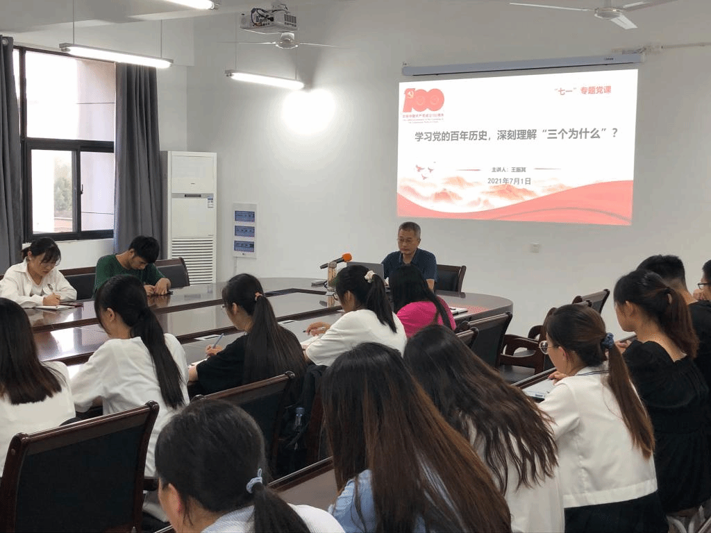为庆祝中国共产党成立100周年,深入推进党史学习教育,进一步引导广大党员坚定理想信念,7月1日下午,信息与网络工程学院党委书记王振其在尚行楼B418会议室为学院学生党员作党史学习教育“七一”专题党课。