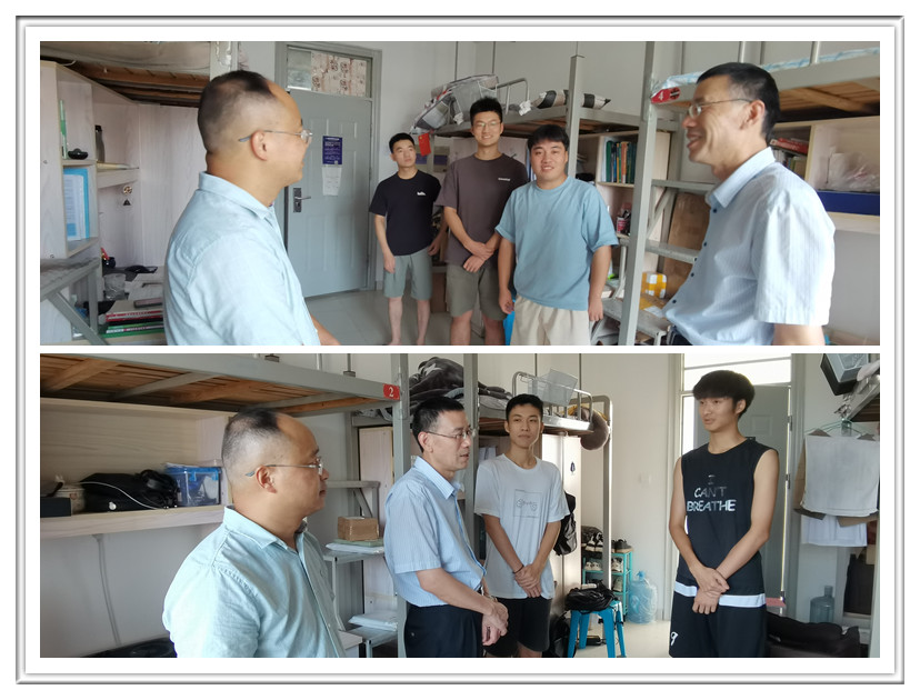 随后,骆海邦、尚磊深入学生公寓,了解暑期留校学生的生活情况,并开展安全卫生检查工作。老师们亲切问询同学们住宿环境与平时是否有差异,暑期餐厅饭菜是否合口,洗澡用水是否方便等问题。尚磊提醒道,各位同学暑期留校期间,要严格遵守暑期留校前签订的各项承诺书,保障自己的人身安全和财产安全;要严格执行学院暑期留校学生管理规定,做到出校请假、离校登记、返校申请;要严格落实疫情登记系统信息填报,做到每日体温如实填报。