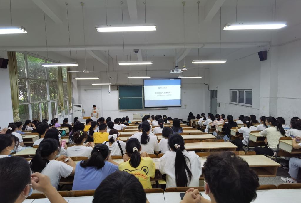 大学生活对新生来说是新鲜而美好的,同学们满怀期待的投入到新的校园生活时,安全防范与校规校纪却不能忽视。为了帮助新生尽快了解校规校纪,培养大学生应有的安全防范意识,人文学院9月16日晚在求知楼A207为2021级新生召开安全防范与校规校纪主题班会,班会由专职辅导员鲁冰冰主持。