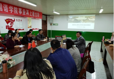 为了更好的了解翻译硕士授权点申报与建设过程中所涉及的基本条件,凝练学院专业特色,确立我院创建翻译硕士点方面的明确方向和目标,外国语学院特邀请教育部高等学校英语专业教学指导分委员会委员、全国翻译专业学位研究生教育指导委员会学术委员会委员、湖北省教学名师、二级教授、华中科技大学外国语学院许明武院长于15日下午14点在外国语学院会议室进行了一场翻译硕士授权点申报与建设要素的报告会,报告会由陈德用院长主持。