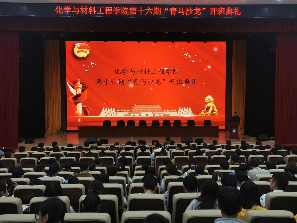 10月17日,化学与材料工程学院在龙湖校区信息中心东辅楼报告厅举行第十六期“青马沙龙”开班典礼。学院党委副书记张炎,马克思主义学院黄钦海老师,分团委副书记薛璐莎,辅导员李潮升、沈竞成以及第十六期500余名“青马沙龙”学员参加了典礼。