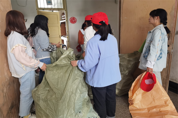 在活动准备前期,工作人员准备好工作所需的用具,并联系好资源回收站,同学们踊跃报名,希望能为环保事业贡献出自己的力量。在活动中,志愿者们集合完毕后由青年志愿者协会的相关负责人为同学们分组,随后各个宿舍楼组长带领组员们到宿舍楼进行废品回收,最后在固定的地点集合。在回收废品的过程中,志愿者们一遍又一遍地耐心询问,同学们纷纷拿出自己的废瓶、纸箱、旧衣物等,活动在同学们的积极配合下,进行得十分顺畅。同学们不仅对寝室卫生进行了大扫除,也用实践行动贯彻了勤俭节约的良好风气。在活动最后,搬运废品的过程中,志愿者们分工合作,齐心协力把满满当当的回收袋运送至固定点,并将其进行分类整理,方便回收再利用。