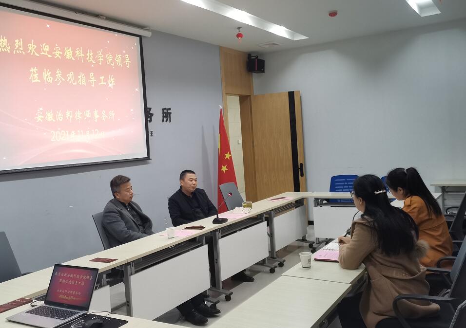 安徽治邦律师事务所曾获得过“安徽省优秀律师事务所”“省综合实力50强”“蚌埠市甲级律师事务所”“全省律师行业基层党建工作示范岗”等荣誉称号,是一家跨省区经营的综合性律师事务所,在业内享有较高声望,本次就业调研活动为人文学院进一步创新人才培养模式,增强校企联动、推动人才发展提供了明确方向。(特约通讯员:焦雪松 审核:李沙娜 编辑:张威)