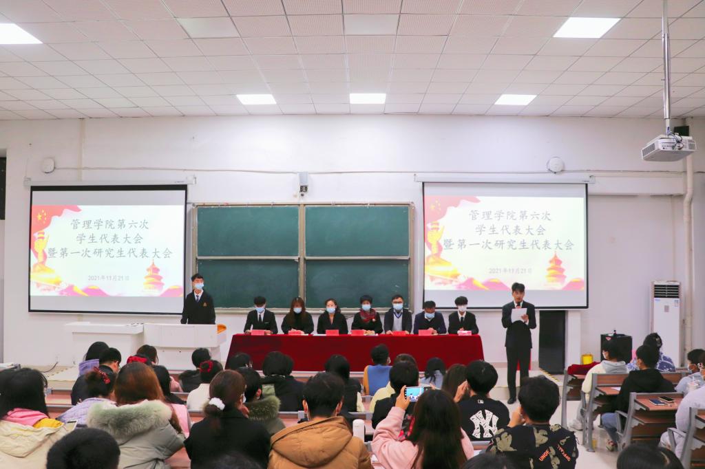 11月20日晚,管理学院第六次学生代表大会暨第一次研究生代表大会在致知楼C111教室顺利召开。院党委副书记、纪委书记陶漫,党委委员、党政办主任李永鹏,团委副书记方辛、江旭聪出席会议。