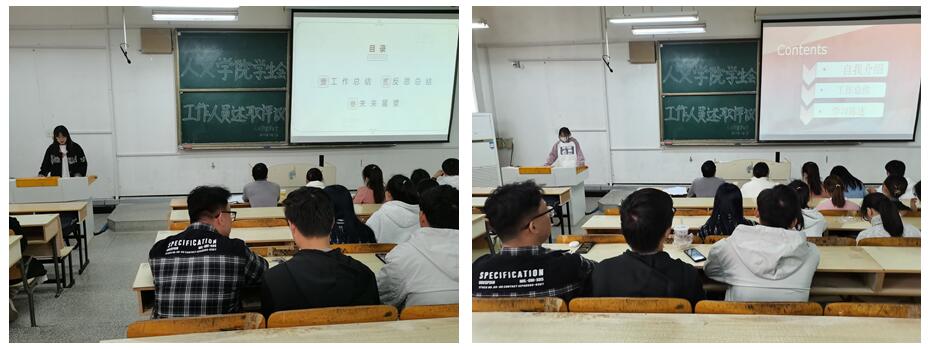 为深化学生会体制改革,进一步激发其组织活力和发展动力,依据《财神在线登录官网学生会述职评议制度实施条例(试行)》有关规定,人文学院于11月24日在求知楼A202召开了学生会述职评议大会。人文学院党委副书记李沙娜、学院全体辅导员担任本次会议的评委,学生会主席及各部门负责人参与了本次会议,会议由杜秦阳主持。