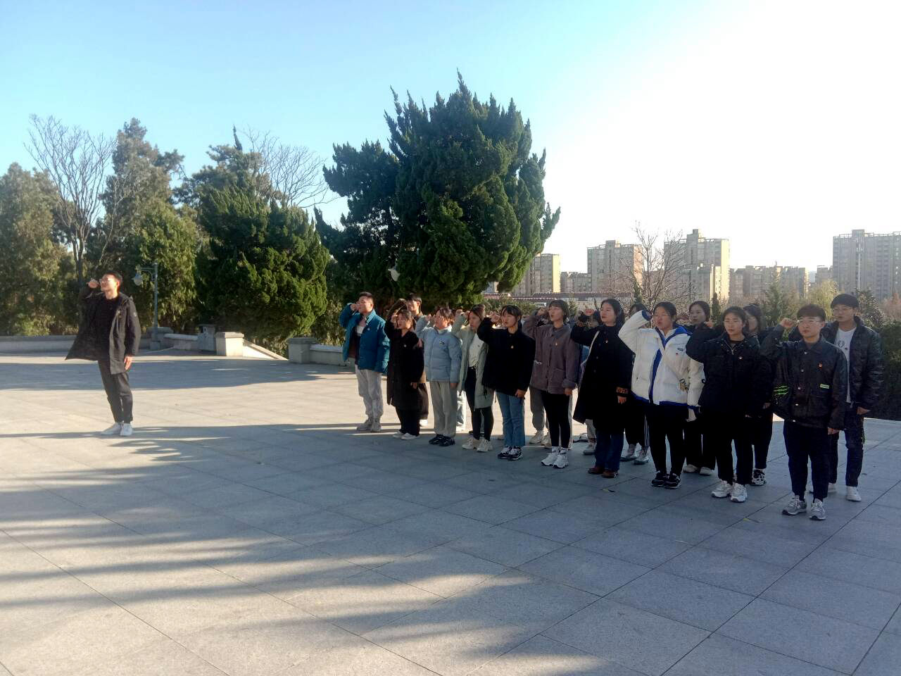 在革命烈士纪念碑前,全体党员高举右手重温入党誓词,提醒自己时刻牢记党的宗旨,追忆和学习革命先烈的奋斗历程、崇高情怀和优良作风,缅怀先辈们的精神品格和卓越功勋。