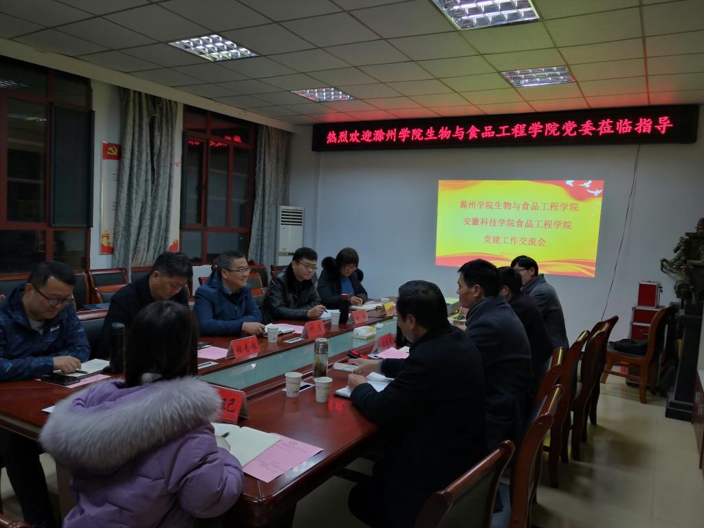 12月2日下午,滁州学院生物与食品工程学院党委书记叶高、党委副书记、纪委书记赵来一行来食品工程学院开展党建工作交流。院党委书记付光玺、院长杜传来、院党委副书记、纪委书记王广良、副院长翟立公及各党支部书记参加交流会。交流会由付光玺主持。