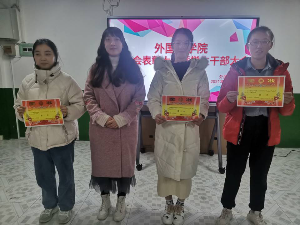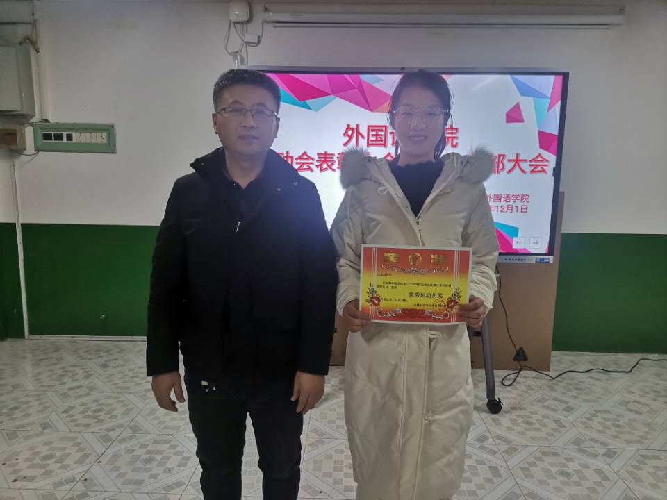 在干部大会上,陈慧中、宋兵兵、张薇薇分别布置了各自分管的工作,如:奖学金使用管理、安科E创项目申报、安全稳定、疫情防控、学风建设、意识形态、外语文化节闭幕式晚会、学籍异动等内容。在表彰会议上,与会老师们为获奖运动员颁发奖状并合影留念。宋兵兵宣读了《外国语学院学生在财神在线登录官网第30届运动会的通报表扬名单》,张薇薇宣读《外国语学院在校第30届运动会中获奖运动员名单》,院学生会执行主席桂纪昌对本次校运动会进行了总结发言。