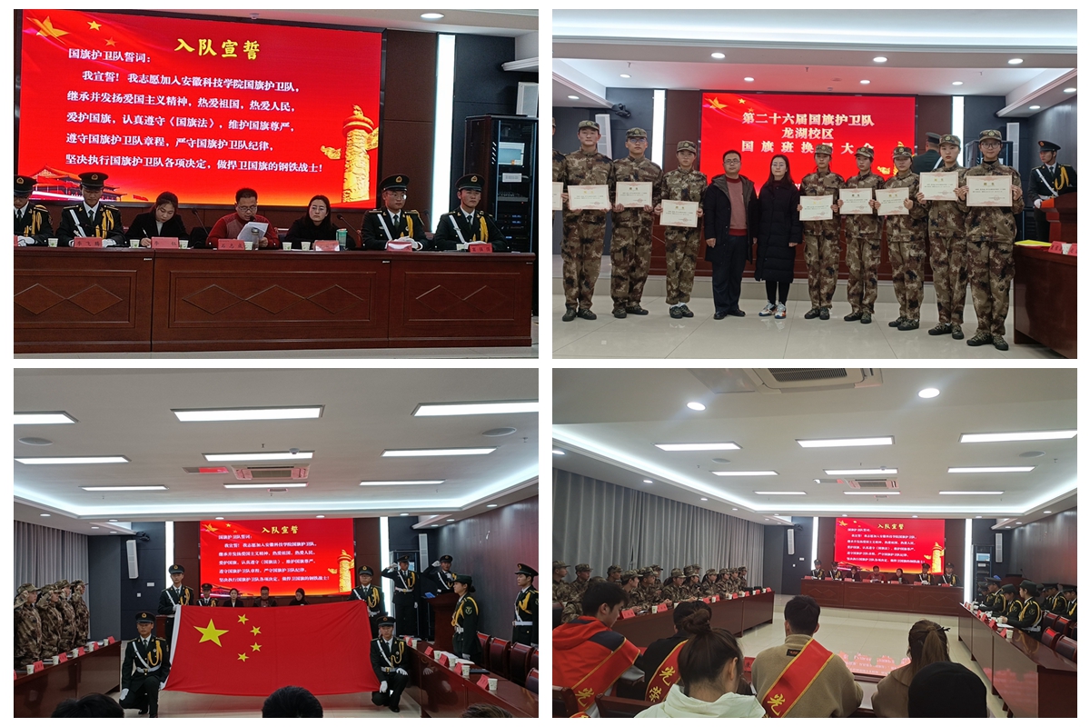 会上,与会老师宣读了老队员退役以及聘任校国旗护卫队第26届新成员的通知并颁发了退役证书和新队员聘书,第26届校国旗护卫队进行了入队宣誓仪式,即将退役的老队员代表为新入队队员代表授予军装,校国旗护卫队退役队员代表发表退役感言、新入队队员代表发表入队感言、新一届国旗护卫队骨干代表作了履职表态发言。