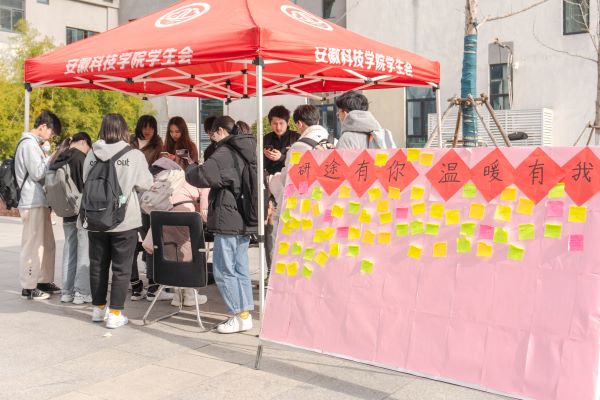 在2021年考研倒计时的最后阶段,为了帮助安科考研学子坚定目标、调整状态、树立信心, 12月20日至23日, 校学生会和大学生青年权益维护中心组织开展的 “我为同学做件事--考研送温暖”主题活动在凤阳校区和龙湖校区同步进行。丰富多样的形式,为安科莘莘学子带来了冬日的温暖。