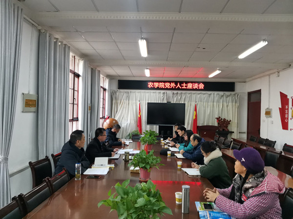 1月17日上午,农学院在学院会议室组织召开党外人士座谈会。邢素芝、胡友军、赵合明、张开京、艾昊、李瑞宁、李敏等党外人士,学院党委副书记、院长崔广荣,党委副书记、纪委书记张轶辉出席座谈会。座谈会由学院党委书记何世潮主持。