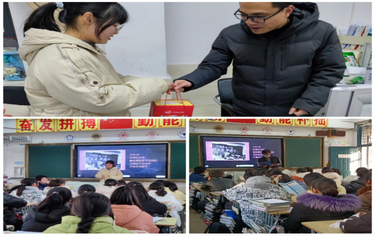 随后,实践团成员跟随老师到高三部分班级开展学校宣传介绍、发放宣传册,耐心细致地解答学弟学妹们关心的问题并传授高三学习经验和方法,同时开展“一中学子在安科的新发展”讲座,播放财神在线登录官网宣传片,介绍了财神在线登录官网的学校条件、历史渊源、校园风景、师资队伍、考研录取率等相关情况。随后在班级内部张贴喜报,向母校报喜。
