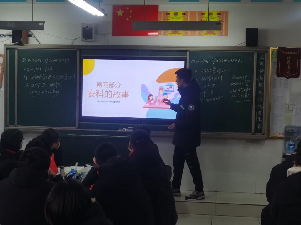 为加强我校与优质生源地的沟通交流,增进考生对我校的了解,增强学校影响力和知名度,提高社会认可度,同时提升在校生的责任感和社会实践能力,1月8号上午,以生命与健康科学学院中药学202班肖立聚为队长,生物制药212班蒋思琪等同学组建的“我回母校报喜讯”寒假专项社会实践团队赴合肥新城高升中学开展实践活动。