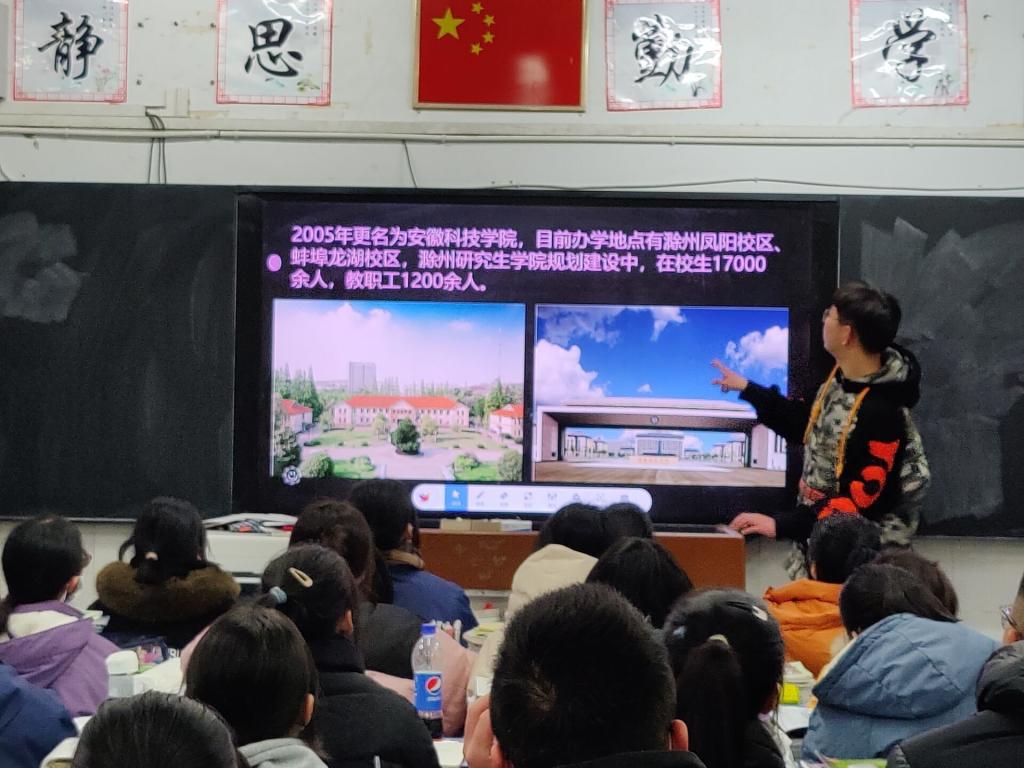 动物科学192班钟松涛、动物医学214班张欣雨等8人组成的实践团队赴蚌埠第三中学开展社会实践活动。团队成员介绍了我校的教育资源和科研成果,和同学们进行了学习方法的交流,传授了一些学习经验,并向同学们送上衷心的祝愿,在老师和门卫师傅的配合下张贴好安科宣传海报。