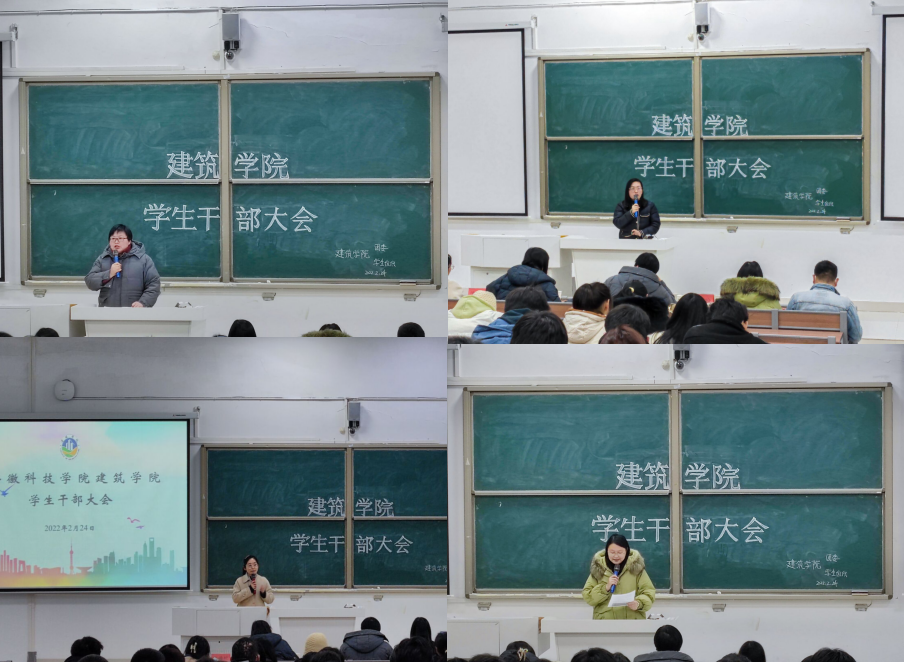 一年之计在于春,2月24日下午,建筑学院在致知楼A111召开新学期学生干部大会,学院党委副书记、纪委书记谢宜勤、团委书记沈德艳、党政办主任靳盼、全体辅导员、各班级班长、团支书、生活委员、学习委员及学生组织团体负责人参加了大会,会议由沈德艳主持。