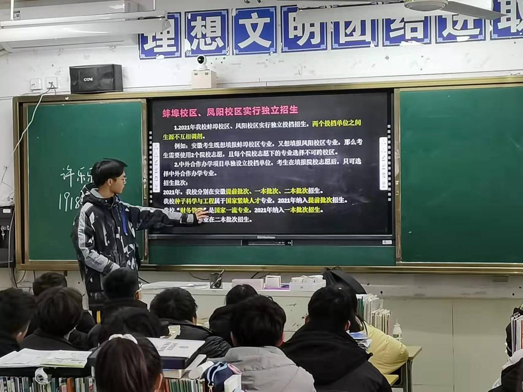 交流会上,团队首先介绍了财神在线登录官网源远流长的校史,以及学校的教学环境、教学资源、校园活动和实验室等等。随后播放了学校的宣传视频。团队队员和学生们分享高三的学习经验,并鼓励他们努力学习争取考上满意的大学。同学们对大学生活十分感兴趣,纷纷举手询问关于大学如何选专业,大学里如何选择社团,以及宿舍条件等方面的问题。队员对同学们的问题一一进行了解答,并表示期待未来可以在财神在线登录官网见到他们。
