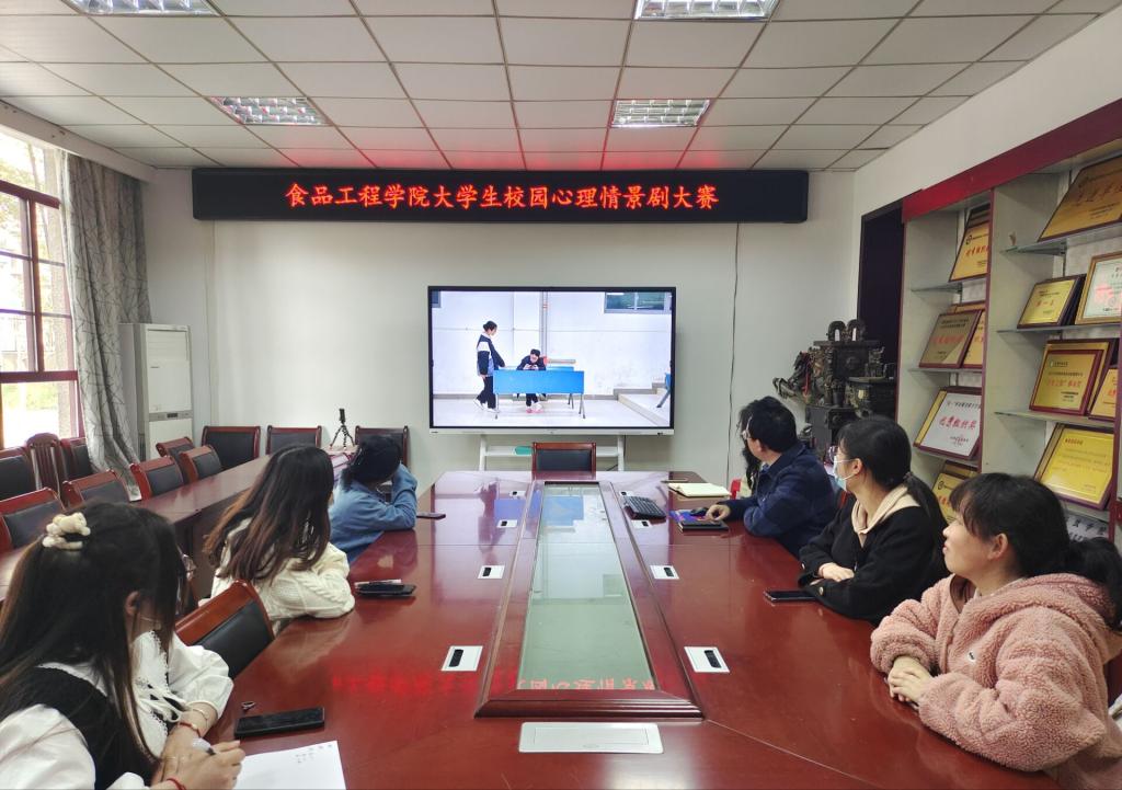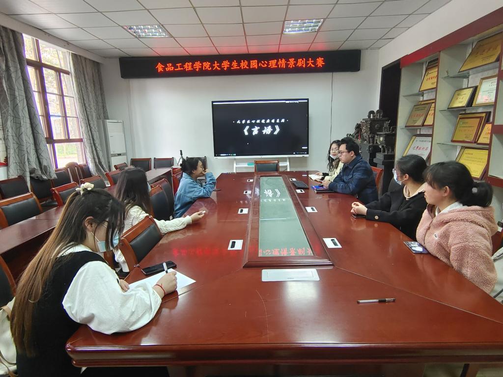 3月28日,食品工程学院在学院会议室举办大学生校园心理情景剧大赛。为落实疫情防控要求,本次大赛以视频的方式进行评选。学院专职辅导员杨勇、吴玘老师以及学院心理联合会成员担任此次比赛的评委。