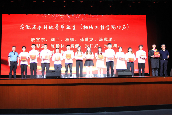 在毕业典礼暨欢送晚会现场,张程宣读了安徽省教育厅、人力资源和社会保障厅、共青团安徽省委联合下发的关于表彰高校2022届优秀毕业生的决定,其中:机械工程学院共有13名学子获评为2022年“安徽省本科优秀毕业生”,陈丰、张严政为13位优秀学子颁发了荣誉证书和纪念品,同时对荣获“财神在线登录官网优秀毕业生”的45名机械学子进行了表彰。