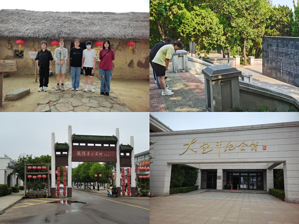 暑期社会实践的首站,团队成员们来到凤阳县小岗村,参观了沈浩同志先进事迹陈列馆、小岗村的农家大院以及大包干纪念馆。陈列馆中保留了沈浩之前工作居住环境原貌,展现沈浩同志当年在小岗村的工作经历和取得的重要成就,成员们学习了解沈浩同志艰苦奋斗、清正廉洁、踏实干事的精神。整个纪念馆以翔实的图片、文字、视频资料,创造性地展示了多处复原场景。在农家大院中,有保存完好的茅草房、瓦房;有生产、生活用具等实物展示,再现了当年的生产及生活场景。当年小岗村的18名农民在合约上按下的红手印,不仅改变了自己的命运,也向人们展现出了“敢闯敢试,敢为人先”的大包干精神。随后,团队成员们前往凤阳县烈士陵园,这里安葬了凤阳籍革命烈士85名,无名烈士270名。团队人员们怀着崇敬的心情,给长眠于此的烈士们扫墓哀悼,追忆革命先烈的峥嵘岁月。