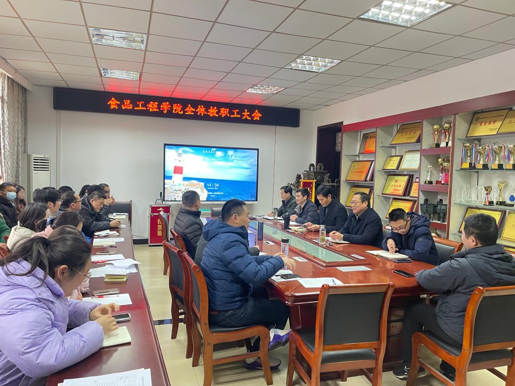 2月22日下午,食品工程学院在学院会议室召开期初全体教职工会议,学院党委书记付光玺,院长杜传来、党委副书记王广良、副院长郑海波、翟立公出席会议,全体教职工参加会议。会议由付光玺主持。