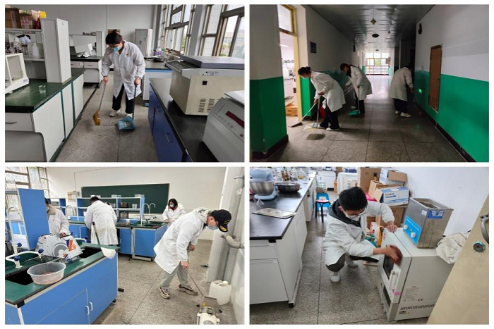 活动开始,在实验室管理人员的指导下分配工作区域,主要内容是各楼层的卫生和实验室清洁、整理。活动期间,志愿者们尽心尽力,认真清除实验室污渍、擦拭设备,整理实验室物品,仔细清理了楼道、电梯和走廊等公共区域的垃圾,发现并及时排除了一些潜在的实验室安全隐患。志愿者们听从安排,分工协作,不怕脏、不怕累,高效、全面、有序地摆放实验器材,整理仪器,将各种实验用品进行归纳和整理,圆满地完成了各项任务。