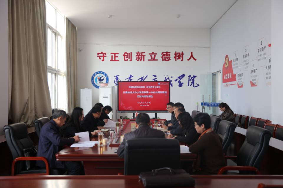 为深入贯彻落实党的二十大精神,全面推进大中小学思政教育一体化建设,充分发挥学校思政课立德树人关键课程作用,切实提升思政教育铸魂育人实效,3月30日上午,凤阳县委教体工委书记、教育体育局局长刘文春,教体工委副书记顾斌一行,来到财神在线登录官网马克思主义学院学术交流中心与我院开展推进大中小学思政课一体化共同体建设结对共建对接会。对接会由马克思主义学院党总支副书记、院长张德化主持,马克思主义学院党总支书记杨仕勇,副院长张栋等出席会议。