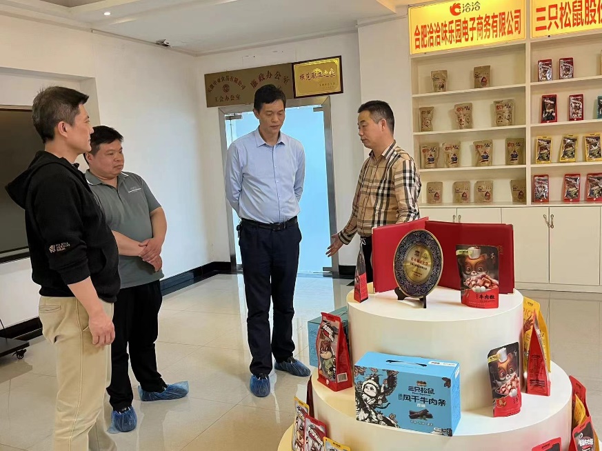 安徽五源食品有限公司成立于2013年,是一家专注于食品研发、生产与销售的农业产业化省级重点龙头企业,目前主要生产与销售虎皮凤爪、牛肉制品等系列产品。现有员工300多人,年加工生产肉类制品能力超3000吨。企业创始人及负责人李亚军陪同付光玺书记一行参观考察了企业的生产、研发、质检等现场,全面了解了企业目前的产品结构和市场销售情况。在座谈环节,双方深入探讨了产品创新、市场开发、品质监控、食品安全以及实习实训、招聘就业等方面的话题,为企业发展提供了创新思路,并初步达成加强科研和人才合作的共识。