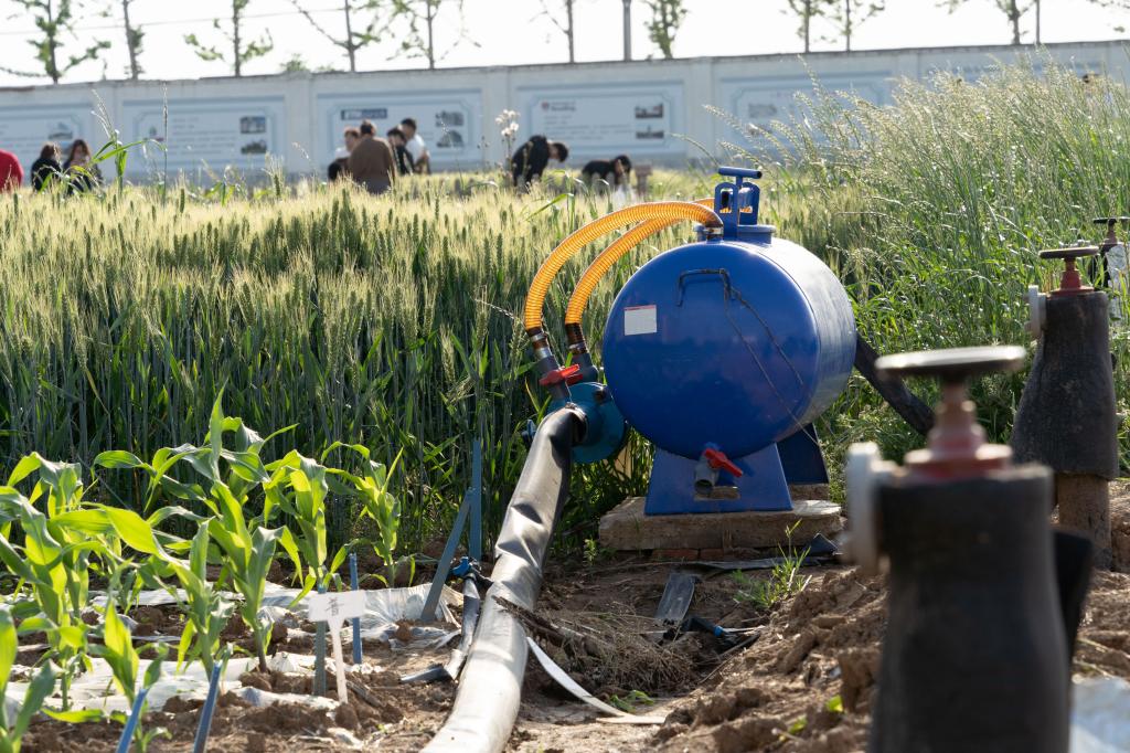 同学们一同来到种植园南侧,这是学校玉米课题组的试验田,田里正在进行春播甜糯玉米密植水肥一体化试验。课题组研究生方习胜介绍:“这块试验田主要进行的是环境变量的玉米种植对照试验,以此对比同一品种的玉米在肥料、密度、叶片朝向、覆盖方式等不同状态下的生长情况。”沿着玉米田垄,一字排开着黑色塑料软管,这是试验田采用的精准滴溉水肥一体化技术。将肥料融入水中,通过细小的软管埋入玉米田垄覆盖膜下面,以滴灌的方式满足玉米对水肥的需要,有效解决了玉米种植时的精作难题。滴灌水肥一体化技术实现了节水节肥,降低成本,在关键期能提高肥力利用效率,减少污染,生产绿色食品;同时,能够在玉米生长初期达到苗齐苗匀苗壮的效果,提高有效穗的穗数,降低空秆率和突尖,提高甜糯玉米整齐度。试验田里地膜覆盖方式主要有白膜、无膜、黑膜、褐膜4种,面对同学们的疑惑不解,余海兵教授解释道:“覆不同膜,主要是出苗时期不一致,如果能将出苗时间提前,那么甜糯玉米就可以提前上市,反季节更能提高它的经济效益。”