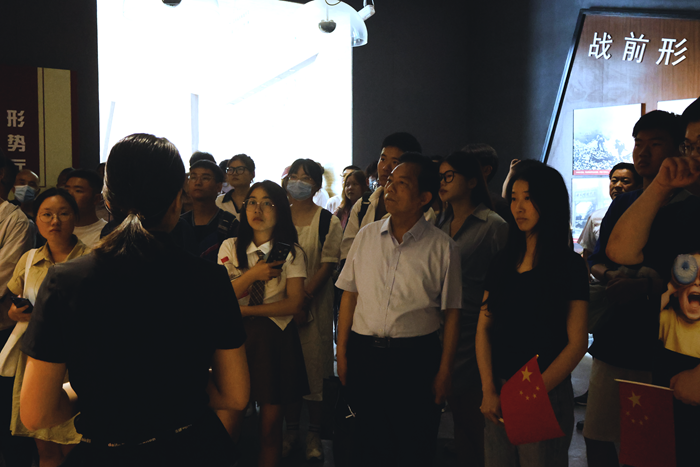 淮海战役双堆集歼灭战发生在淮海战役的第二阶段。为时23天的双堆集歼灭战,中国人民解放军全歼国民党黄维兵团,以完全胜利载入史册,为第三阶段全歼国民党兵团,夺取淮海战役全面胜利创造了条件。在纪念馆内,师生们跟随讲解员,认真聆听双堆集歼灭战英雄事迹。一幅幅栩栩如生的画面,一份份珍贵文件、实物,记载着该场战役的胜利篇章。