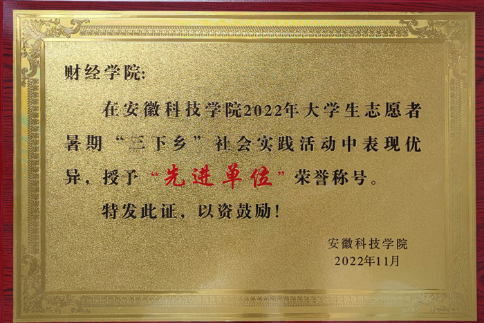 社会实践强化学生担当奉献。财经学院团委多次组织学院各团支部深入瀚百、学苑、龙湖春天、翰林银座社区及蚌埠市城市规划馆、蚌埠市博物馆、汤和路交通调度中心、龙子湖公园等社区或地方开展大学生社区实践计划。学院团委将“思政小课堂”同“社会大课堂”相结合,不断激发青年学生社会实践参与热情,常态化组织团支部开展志愿服务和社会实践活动,加强学生“责任 成才”教育。学院团委连续两年获得校大学生志愿者暑期“三下乡”社会实践“先进单位”称号。