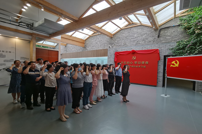 凝心聚力学党史,砥砺前行强党性。在展馆宣誓厅,全体党员重温入党誓词,再次深刻感悟中国共产党人的初心和使命。