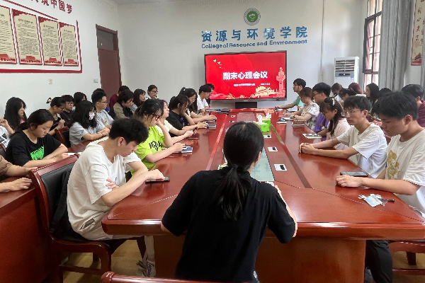 为扎实做好学院心理健康教育工作,及时了解学院学生的心理健康状况。6月9日中午,资源与环境学院于东办公楼207学院会议室召开期末心理委员会议.全体心理委员参加会议,会议由学院教师王丽萍主持。