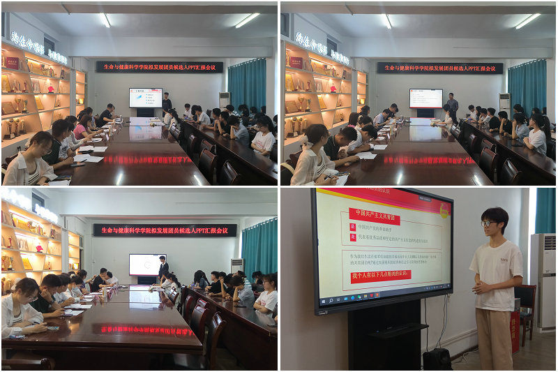 为进一步加强学院共青团队伍建设,激励团员青年勇担时代责任,6月14日中午,生命与健康科学学院于学院会议室召开拟发展团员候选人ppt汇报会议,学院部分辅导员、团委委员、学生会主席团成员担任评委。