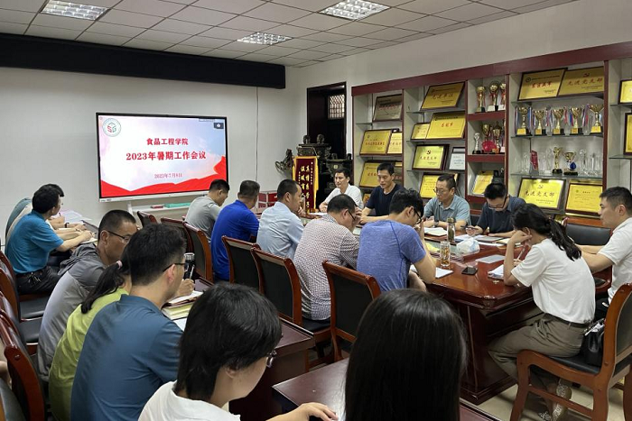 7月8日下午,食品工程学院于学院会议室召开2023年暑期工作会议,对上半年各项工作进行阶段性汇报和总结,并部署暑期重点工作。学院全体教职工参加会议,会议由学院党委书记付光玺主持。