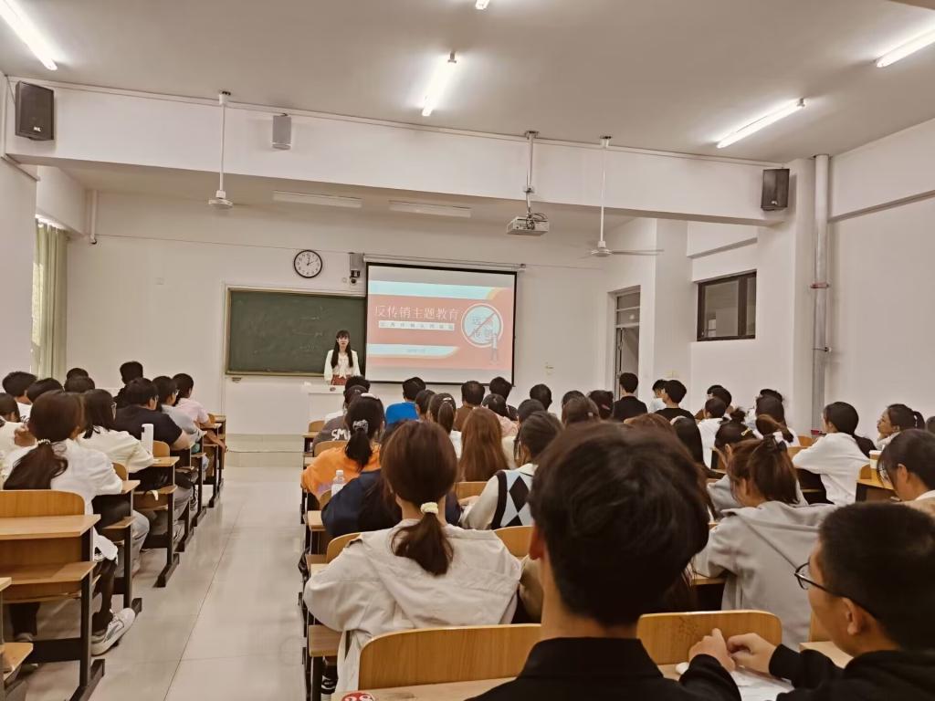 班会全覆盖,防范传销我先行。各班级辅导员围绕传销类型,传销模式,典型案例,防范方法等内容展开阐述,并采用观看反传销宣传视频、传销案例分析讨论等形式来增强同学们对新型传销的认识,希望同学们拒绝传销,争做智慧青年,严于律己,敢于斗争,不给传销留下生存余地。