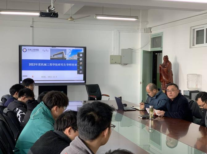 为全面落实研究生导师立德树人根本任务,深化学院研究生导师队伍建设,提升导师指导水平,结合我校导师培训总体安排和研究生处的文件精神,12月6日下午,机械工程学院举办2023年研究生指导教师培训会。会议采取线下线上相结合的方式,学院党政领导、有关教师、新聘研究生导师和研究生代表参加会议,会议由副院长乔印虎主持。