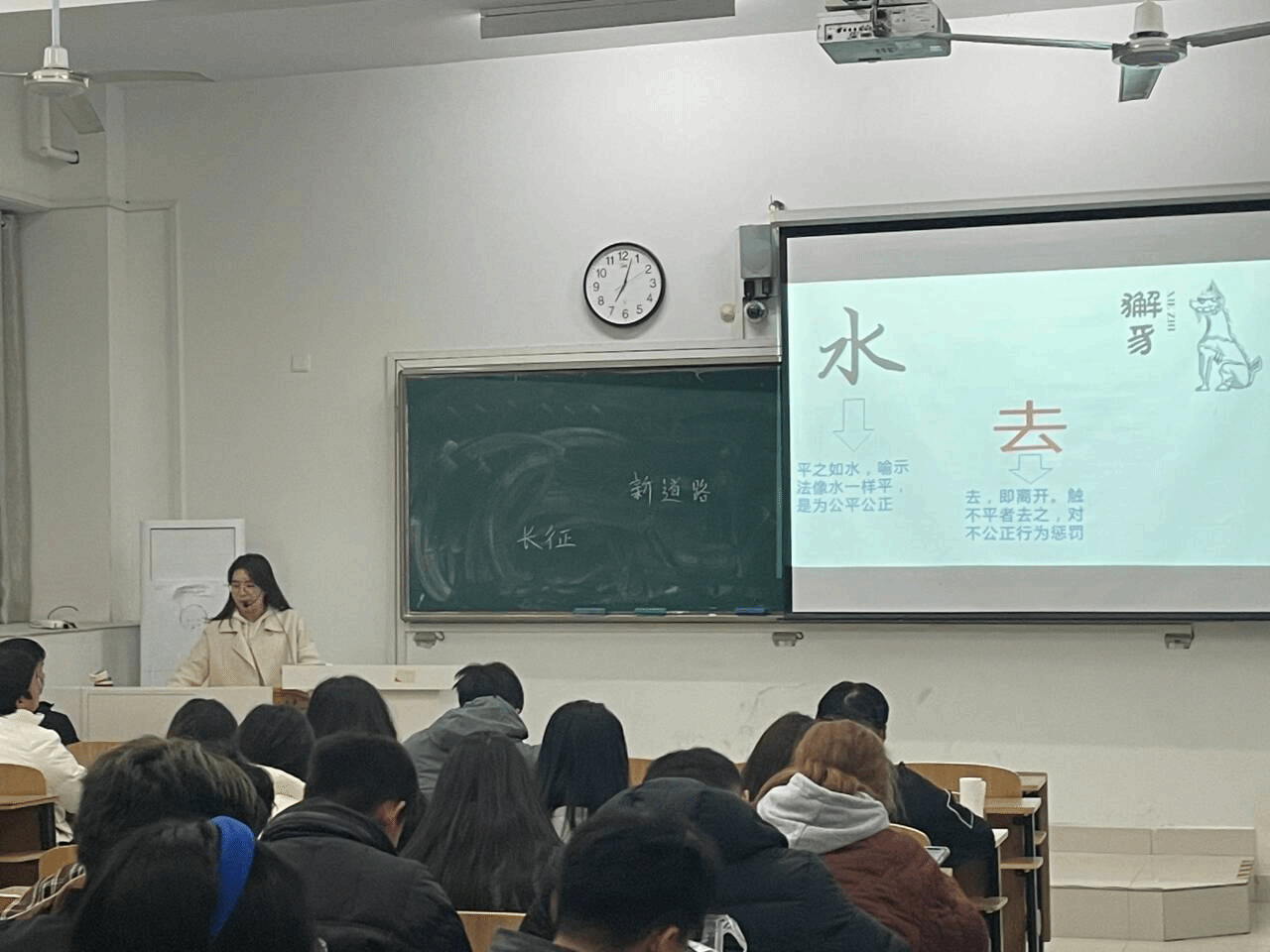 学院团委书记薛璐莎举办了以“大力弘扬宪法精神,建设社会主义法治文化”为主题的讲座。讲座以宪法在现实生活中的体现为切入口,用“以案说法”的方式把法律条文案例化、生动化和形象化,帮助学生们进一步了解各类法律法规政策,增强各类风险的防范意识,提升法治素养。学生们纷纷表示,要在日常生活中坚持“以法为规矩,以律为准绳”,做守法公民,筑和谐社会,自觉向身边人弘扬社会主义法治文化。